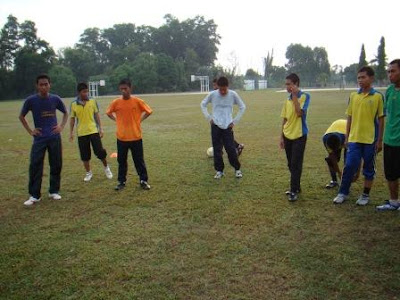 Pagi tadi pasukan bolasepak sekolah menjalani latihan di padang sekolah untuk persediaan untuk Kejohanan Sukan Antara Teknik.